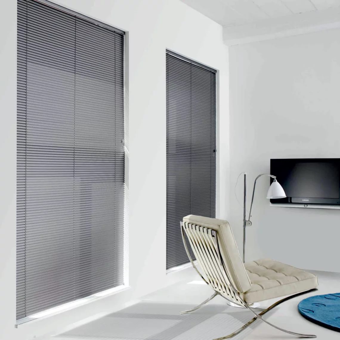 - Aluminum. Metal perfectly tolerates external influences. Blinds can be installed both inside and outside buildings. Lamels are durable and practical.