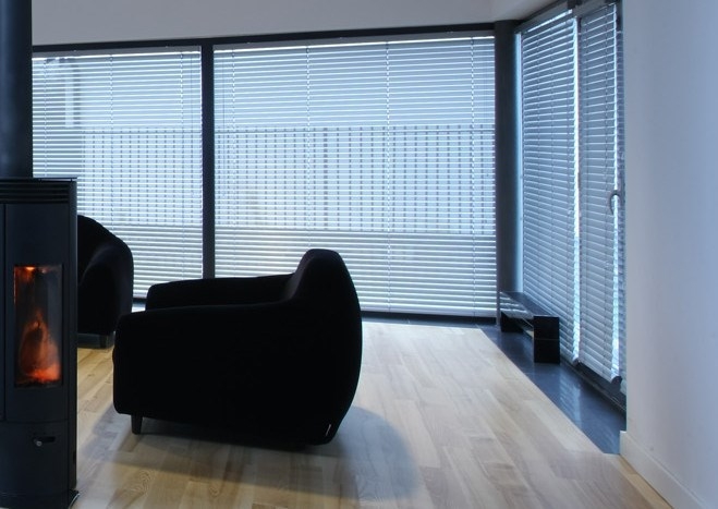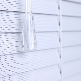 The most common lamella thickness parameter is 25 and 50 mm. The main material for the manufacture is aluminum. This relatively inexpensive material has great strength, is resistant to direct sunlight, is very light, well-suited for cleaning, which allows the use of blinds in rooms where there are high sanitary requirements. Blinds can even be used in medical facilities. However, they will successfully fit into the interior of an ordinary apartment due to a fairly wide color range, especially for products with a thinner slat.