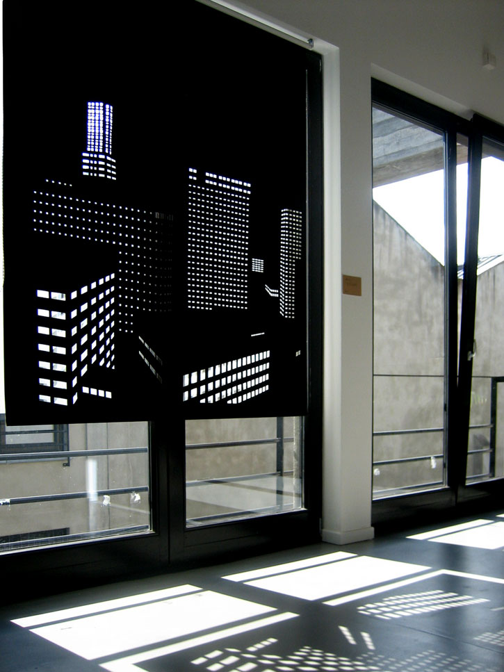 A special type of perforated blinds are products with a pattern. Designers decided to use the holes in the curtain as an element of the picture.