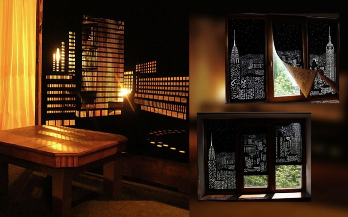 One of the popular variations of the perforated pattern is the night city. When the curtains are down, it seems that you can see glowing skyscrapers and endless streets in the distance. This will be a good solution for a teenager's bedroom, because at this age you want to feel like a part of something big.