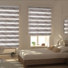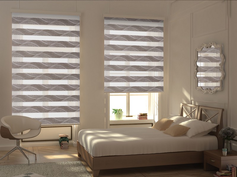 - "Day Night". Blinds of this look consist of several layers of fabric which differs in transparency. This allows you to adjust the lighting inside the room by raising or lowering specific elements.