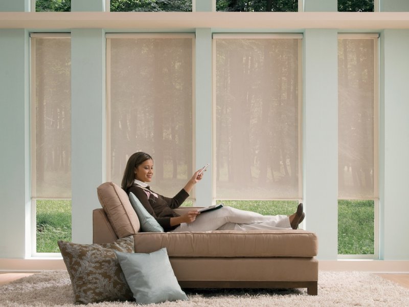 - Window openings large area. Often, automatic blinds are an excellent solution when organizing a winter garden or home cinema.