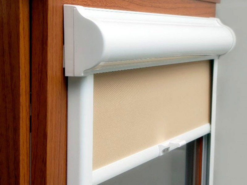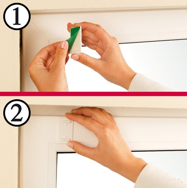 Another simple way to install roller blinds without a box is with adhesive tape or tape. This method also eliminates damage to the profile, since there is no need for mounting holes. Such models are equipped with special mounting components, the reverse side of which is covered with a special adhesive layer.
