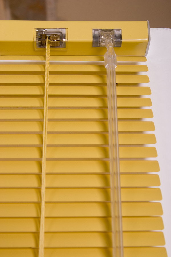 - Standard blindswhich have horizontal lamellae of aluminum. At the top and bottom of the sash, you must fasten the clamps, and between them pull the cable in pairs.