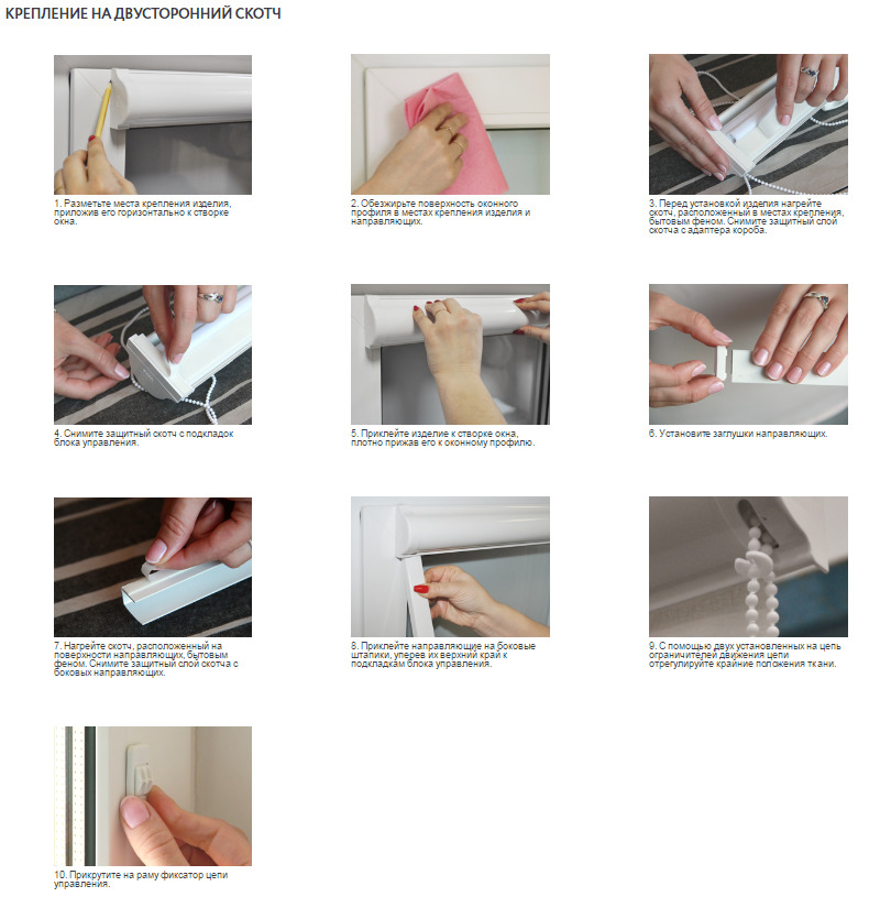 - With the help of a special scotchhaving a double-sided adhesive surface. With this option, the light-shielding design is firmly fixed to all windows - both deaf and opening or folding.