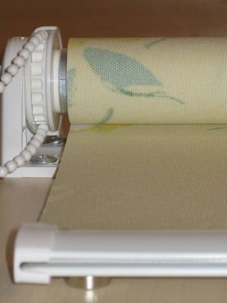 - Cluster curtains in rolls. They are attached to the window frame with scotch tape. To set the canvas in the desired position, simply pull the cord or chain.