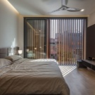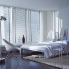 Interframe model often used in modern design bedrooms. This design is located between the two window frames. It is possible to adjust the level of closing of blinds from the inside of the frame where the controls are led.
