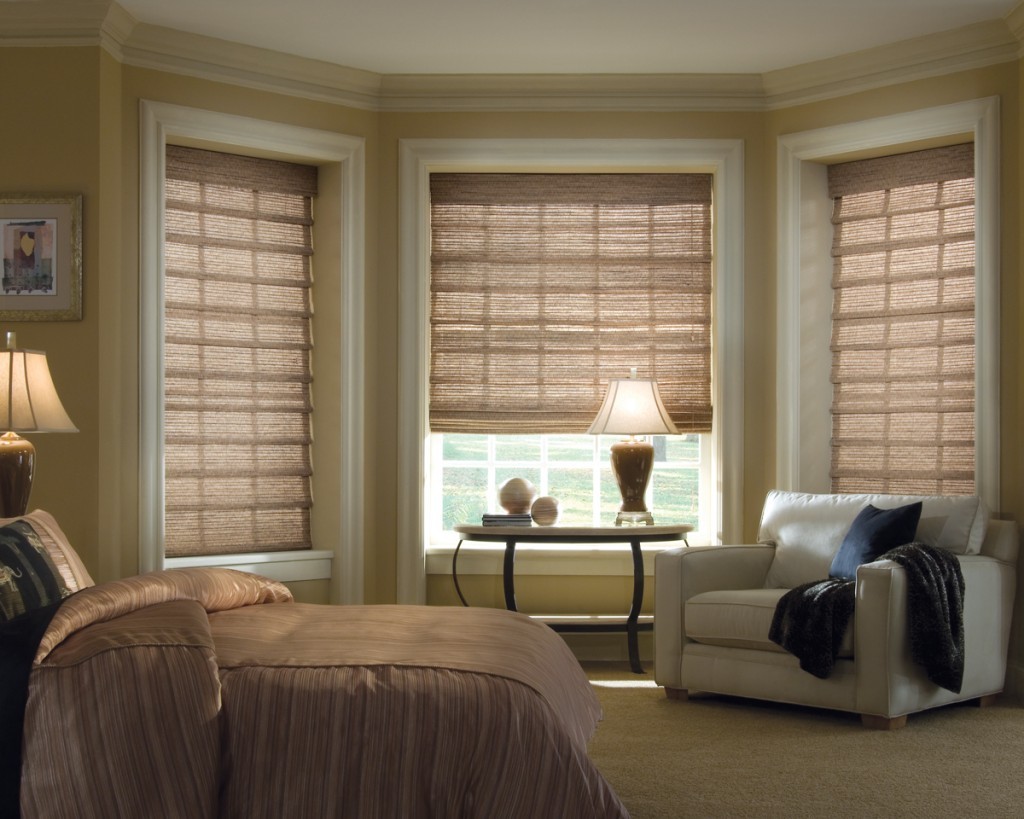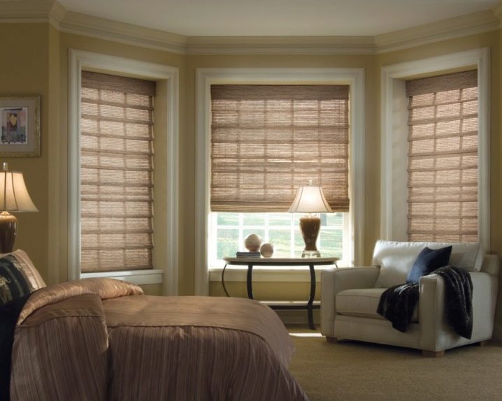 If the design of the bedroom is made in the Japanese style, as well as classic, where wicker furniture is used, would be appropriate. bamboo models. When folded, they take up very little space, and when unfolded, completely cover the window opening, they are well protected from the rays of the sun. Ecological purity of the material will positively affect the quality of sleep.The model passes a lot of air, in such a bedroom it is very easy to breathe. Over time, this feeling will not disappear, if properly care for the product.