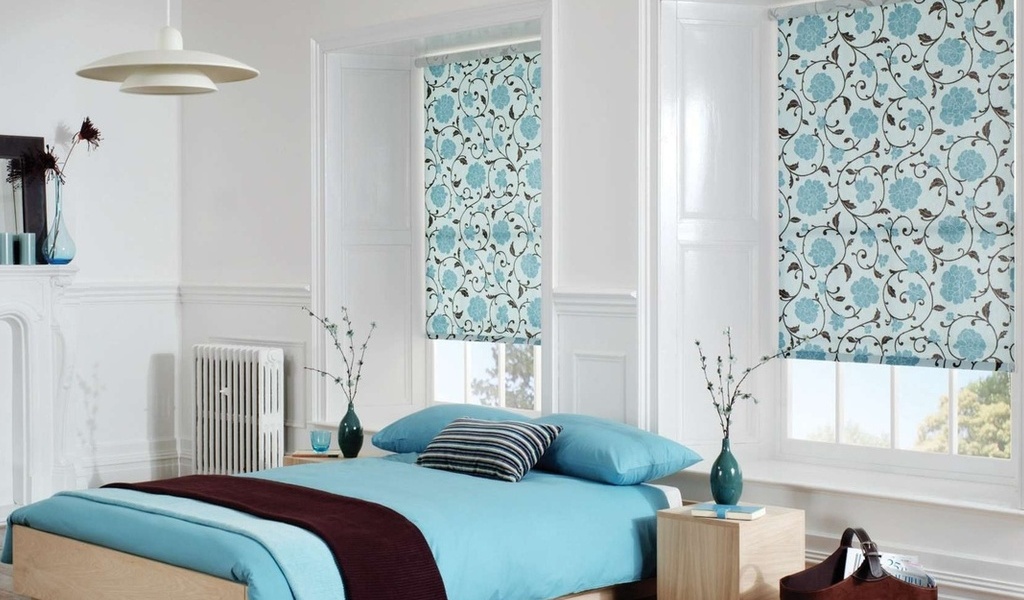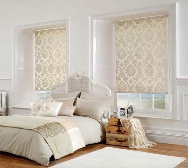 Roller blinds most often decorate the interior of the bedroom. They are practical and easy to use.By the principle of operation, this is a very simple design: the curtain fabric is simply wound on a roller specially provided for this. The design of this type of curtains differs a great variety. The smooth surface of a cloth happens monophonic, with a big palette of colors and shades. A beautiful new printed print can be a highlight of the interior. In the production of these models use different materials: textiles, bamboo, straw.