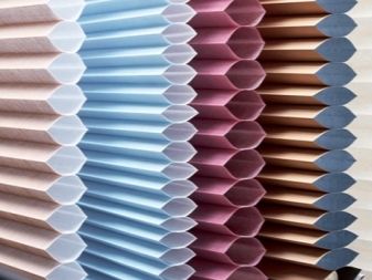 - For a special version of these curtains can be attributed "Pleated", they are twisted into an intricate harmonica and take up little space. Basically, this version of the decor is made of polyester, so that it does not fade in the sun and does not change its size after washing.