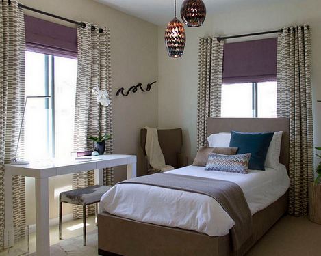 - Color spectrum. For the bedroom perfectly suited blinds calm colors, for example, green, brown, blue and pastel colors. It is important that the color of this element for the design of plastic windows is well combined with the general interior and not too stood out.