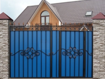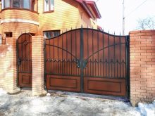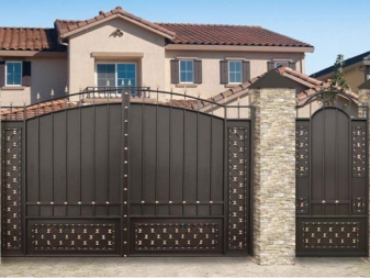 À l'heure actuelle, un vaste choix de matériaux métalliques variés pouvant convenir à la construction du portail s'ouvre aux clients. Vous pouvez souvent voir des projets de construction dans lesquels il y a des structures en métal et des éléments combinés avec du bois. Cette option est non seulement fiable et durable, mais aussi belle, élégante.
