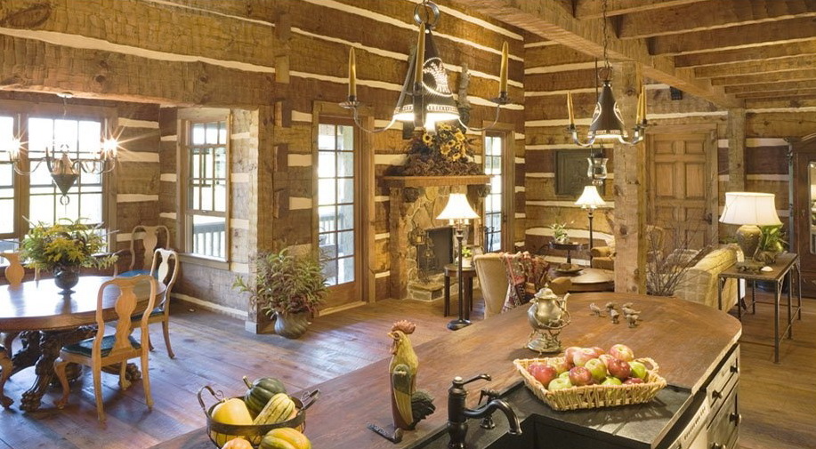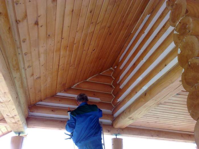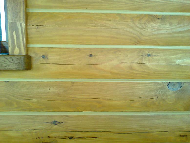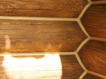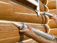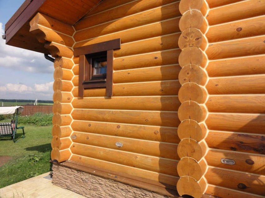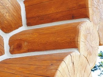 Le matériau est également idéal pour travailler avec une maison en rondins, il permet une finition de haute qualité. La composition avec une teinte naturelle, imitant le bois, est souvent utilisée pour la finition et la réparation de bâtiments à partir de barres profilées ou pour la décoration de maisons individuelles avec des clins ou un blockhaus.