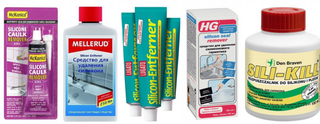 Le marché moderne offre un grand nombre d’outils spéciaux qui dissolvent le mastic silicone. Dans certains cas, peut aider les moyens traditionnels de se débarrasser de la composition.