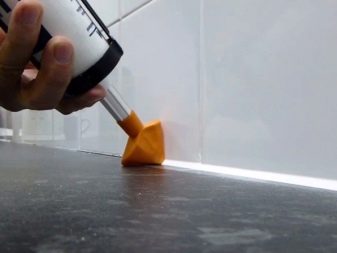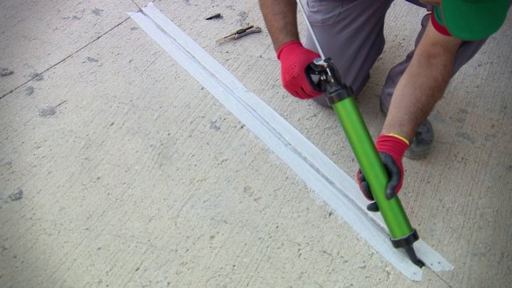 Pour niveler le matériau appliqué, il faut assembler de l'acier ou du bois. La base doit être en forme de L. Le scellant sèche rapidement, mais trois heures après l'application, il se transforme en un mélange résistant aux températures négatives, à l'humidité et aux effets des précipitations. Jusque-là, le scellant ne peut être exposé à de tels irritants.