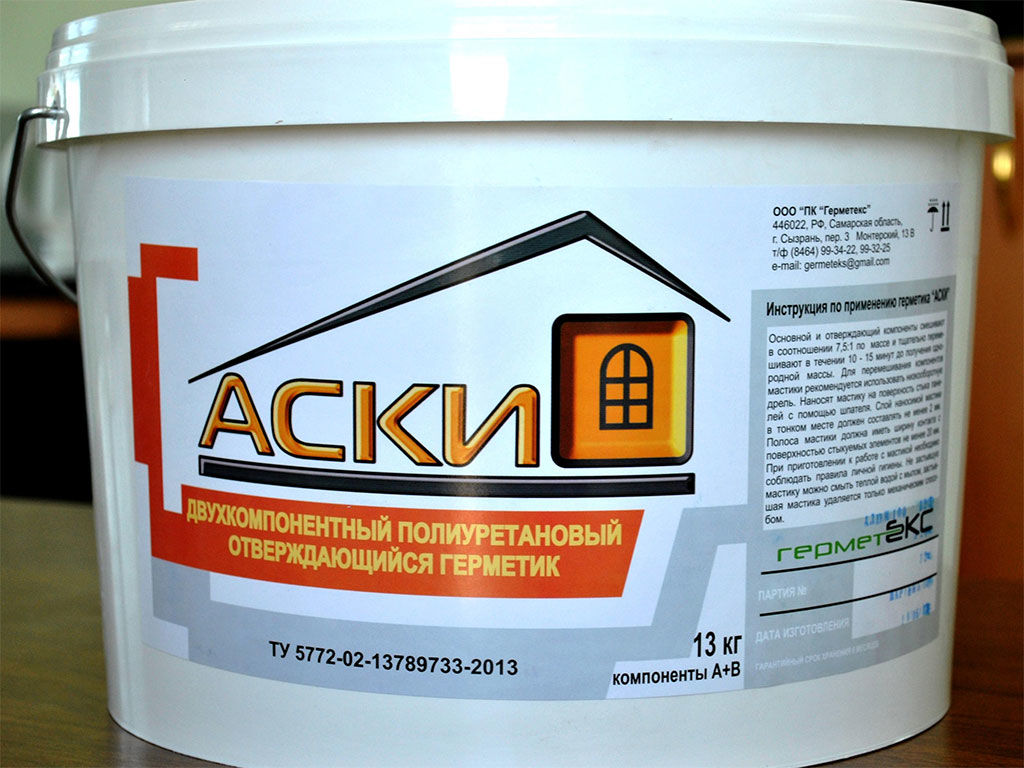 Mastic à base de polyuréthane répandu "Sazilast". Sous cette marque, ils produisent toute une gamme de mélanges composés d'un ou deux composants, utilisés dans diverses industries.