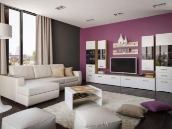Parfois, dans la conception de meubles utilisés plus de deux nuances. Avec un ensemble noir et blanc, lilas, violet et, curieusement, jaune et orange fonctionnent bien. Une telle conception multicolore est souvent présente dans les meubles modulaires de style moderne.
