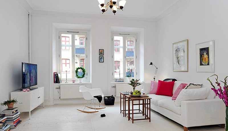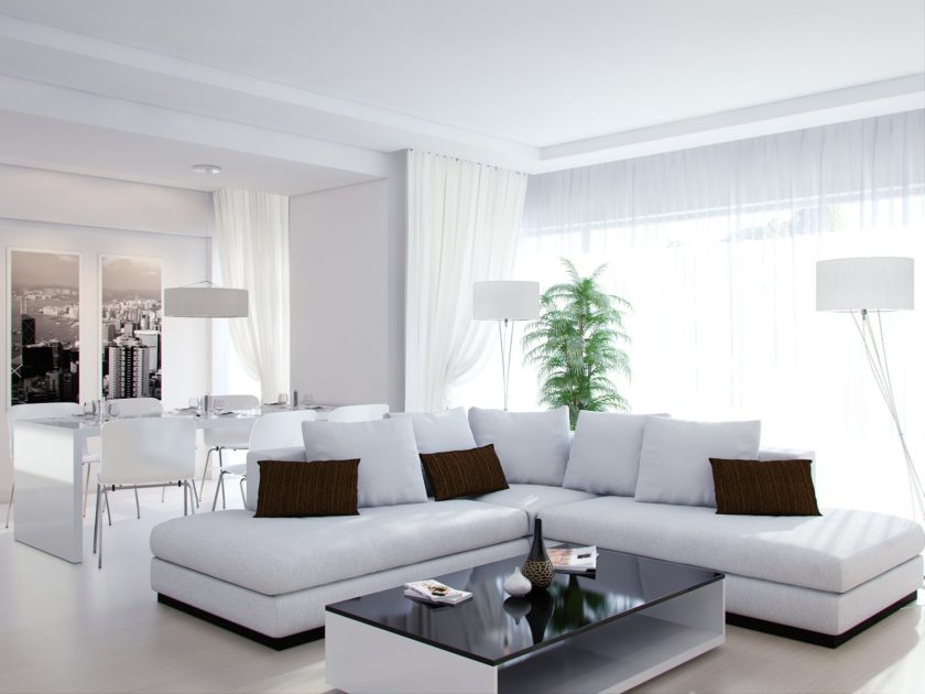La couleur blanche est souvent associée à l'appartenance aux couches supérieures de la société. Par conséquent, l'intérieur, décoré dans des couleurs vives, a l'air élégant et raffiné.