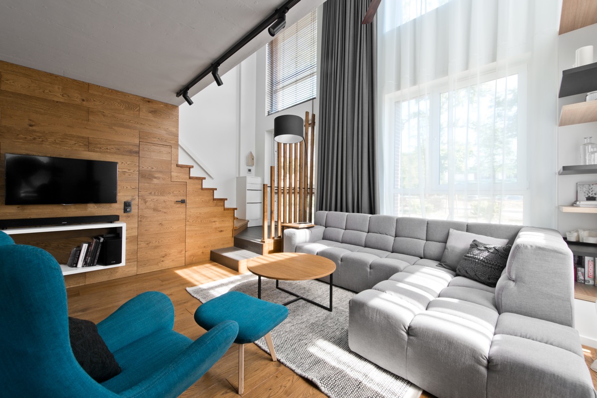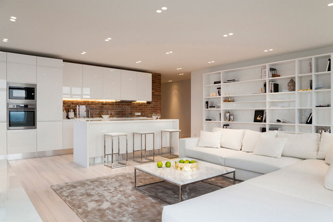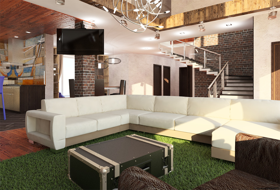 La présence dans le salon de meubles contrastés de couleurs si différentes comme le blanc et l’un des tons de rouge ou d’orange remplit la pièce de joie et de positif. Ces couleurs sont généralement choisies par les jeunes.