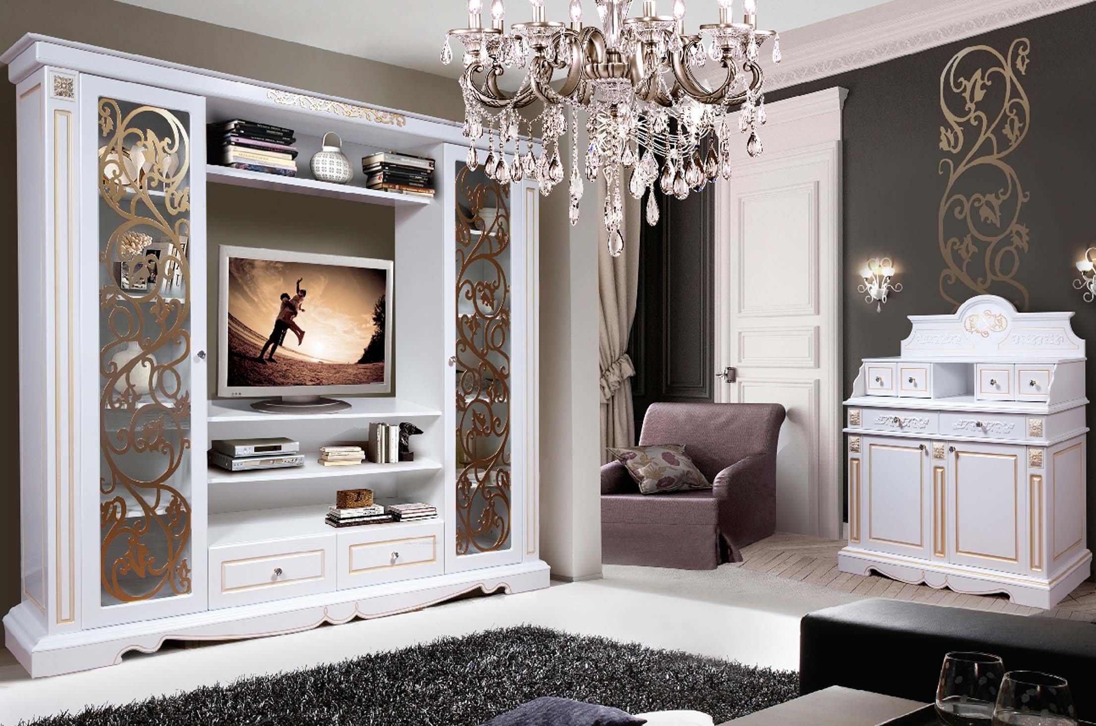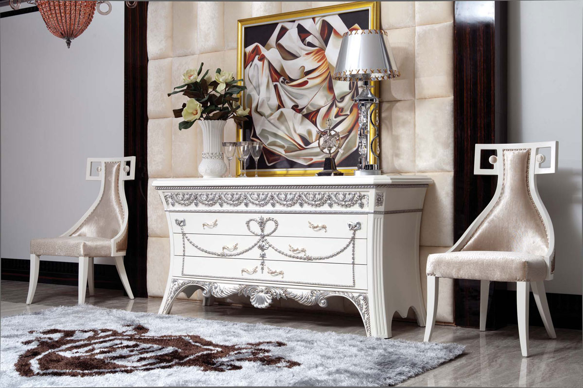 Pour classiques la couleur blanche s’accorde parfaitement, car le mobilier classique suppose déjà la présence d’une plage de lumière. Pour les meubles classiques, on choisit souvent des tons chauds de blanc: la couleur du lait cuit, du champagne, du blanc floral - la dorure caractéristique d'une direction donnée à l'intérieur s'y combine parfaitement.