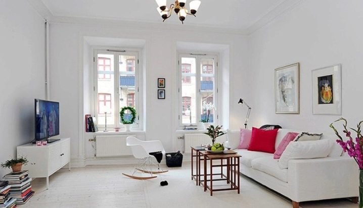 - Compatibilité avec toutes les couleurs. Peut-être n'y a-t-il pas une telle couleur ou nuance avec laquelle il ne serait pas combiné. Après avoir composé du blanc avec des tons pastels, vous pouvez accentuer le lyrisme de la situation, ou inversement, pour créer un intérieur brillant et audacieux, jouant des contrastes.