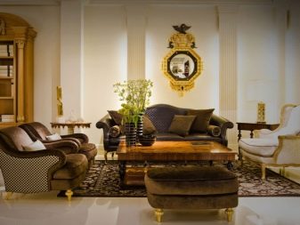 Lorsque vous choisissez des articles d'intérieur de style classique, vous devez faire attention aux meubles rembourrés de forme arrondie avec des murs et un décor raffinés, semblables à la dorure d'un lustre massif.