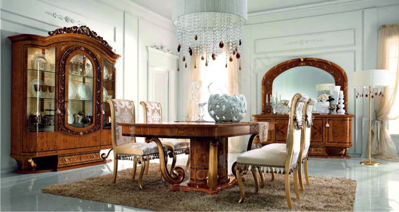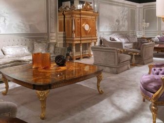 Même alors, l’Europe a pu apprécier le travail de maîtres italiens, qui ont utilisé des arbres précieux dans leur travail, l’ont décoré d’ajouts et de sculptures exquis. Pour la finition des meubles rembourrés, utilisez le tissu le plus cher.