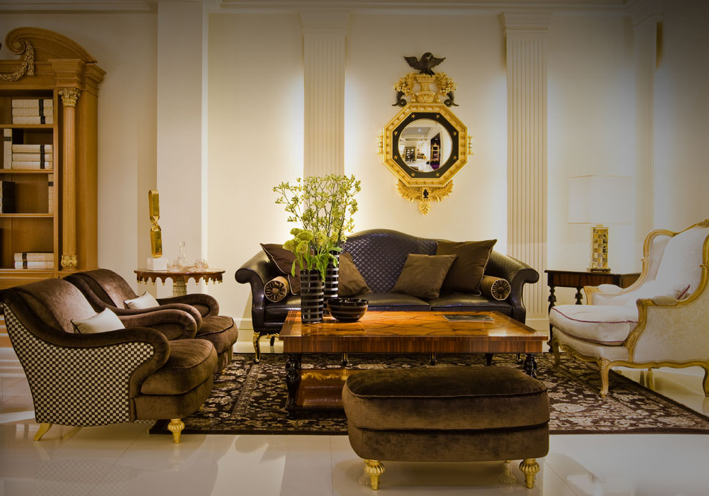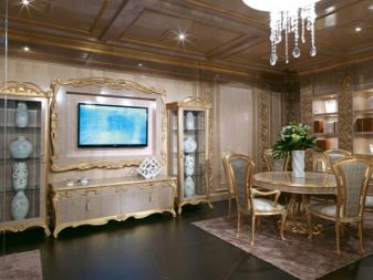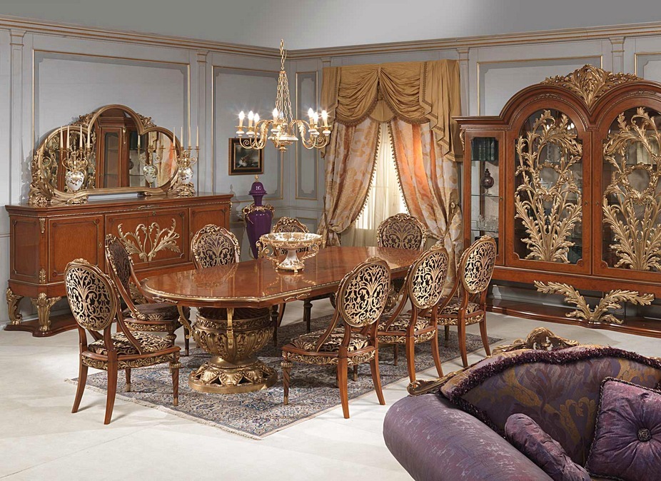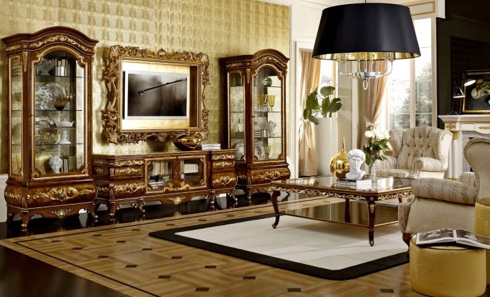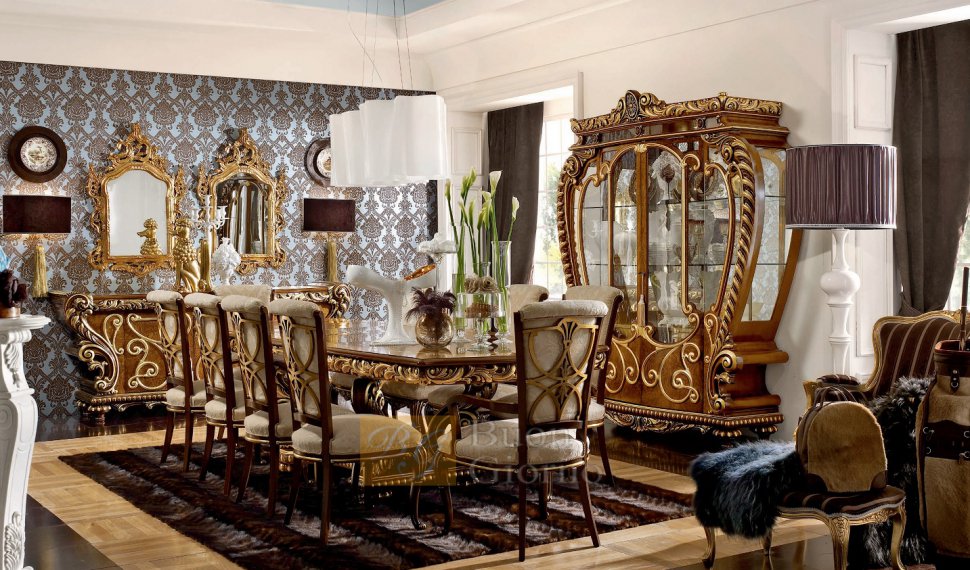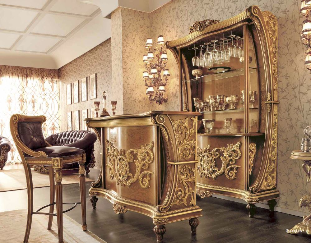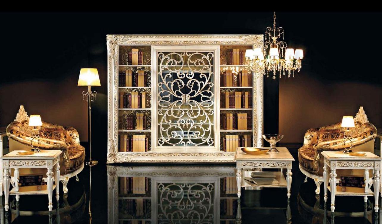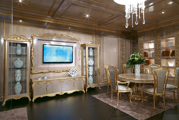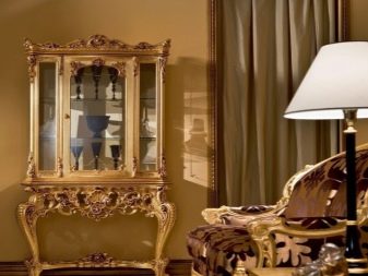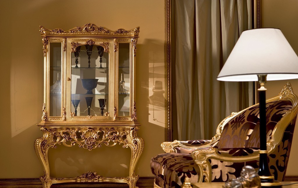 - choisissez des commodes dorées et des vitrines aux sculptures élégantes;