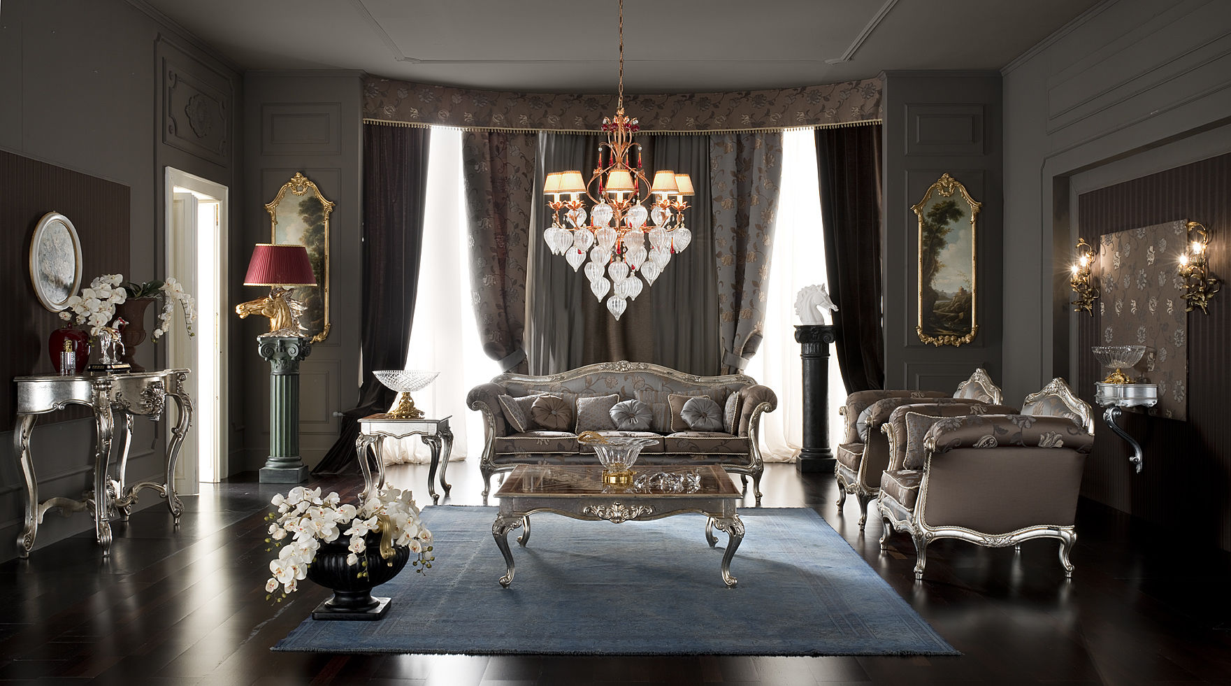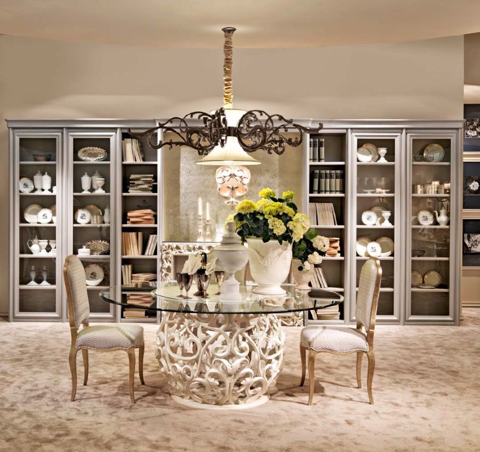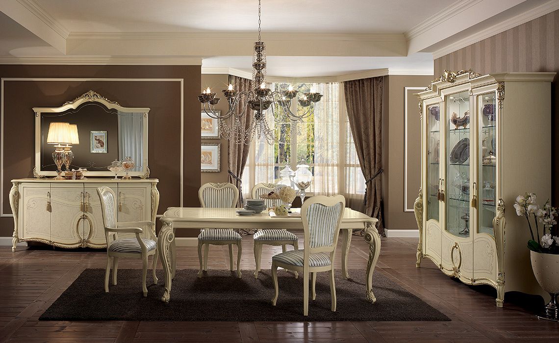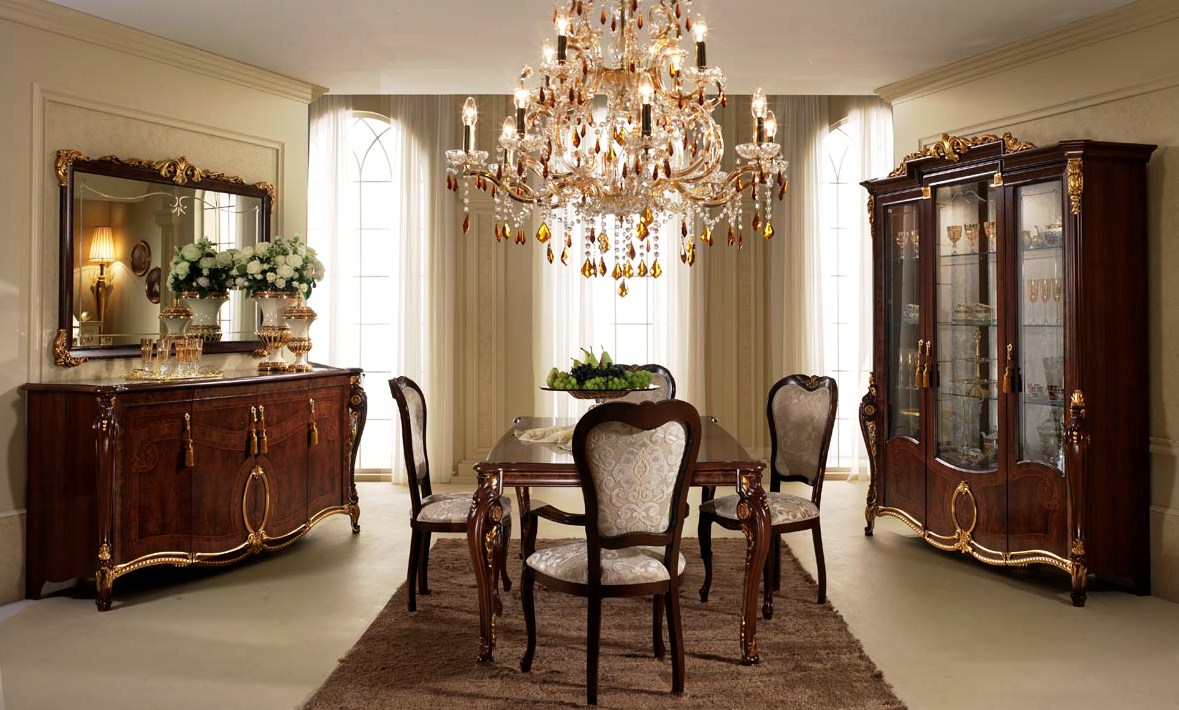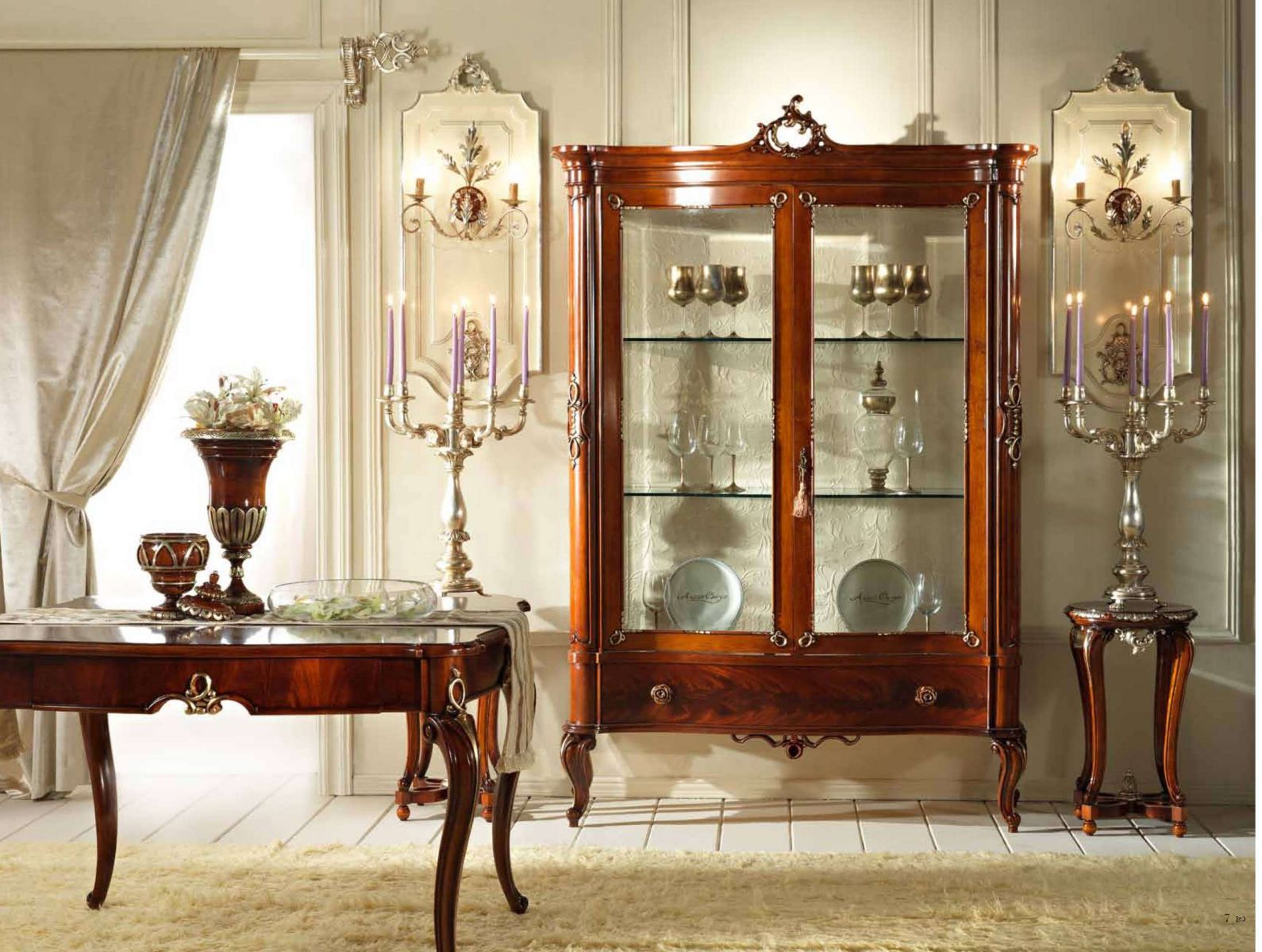 - choisissez des commodes dorées et des vitrines aux sculptures élégantes;