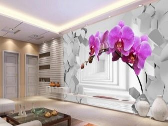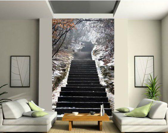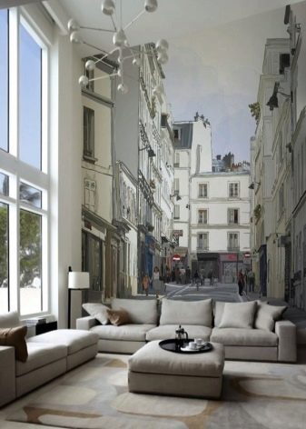 Cette option doit être utilisée dans le cas où la zone de la pièce vous permet de profiter de la photo à grande distance. Sinon, il pourrait y avoir un effet exigu. Si votre salon est spacieux, ce type de papier peint vous permet de créer un effet tridimensionnel sans compromettre la perception visuelle.