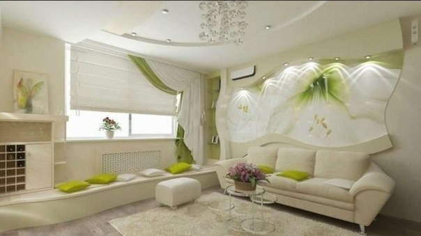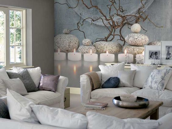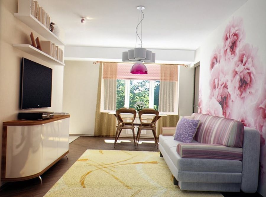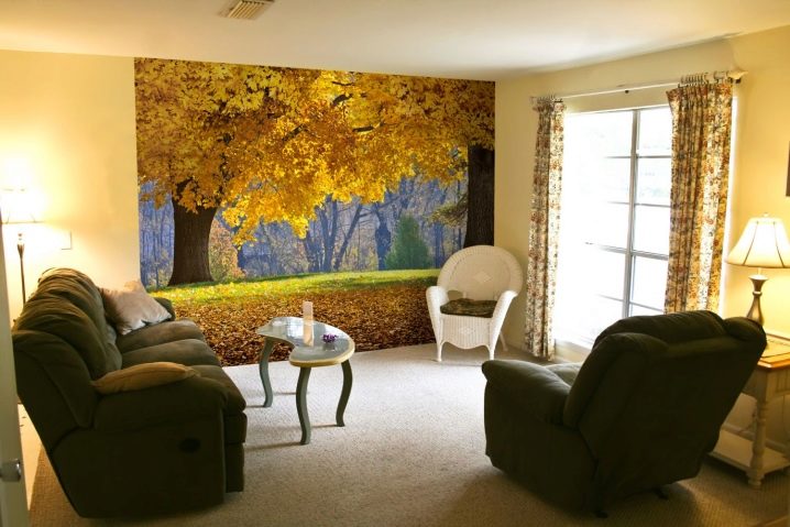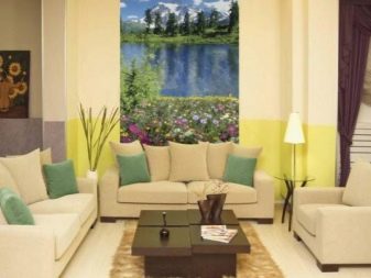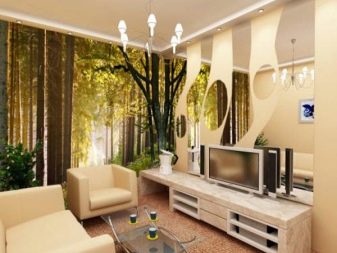 Après avoir lu les conseils généraux sur l’utilisation du papier peint photo dans le salon, nous vous suggérons d’examiner des exemples spécifiques d’intérieurs.