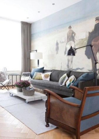 Aussi beaux que soient les papiers peints, avec un choix irréfléchi, ils peuvent gâcher l’aspect général de la pièce. Pour éviter cela, déterminez quelles parcelles du papier peint photo conviendront dans un style de salon particulier: