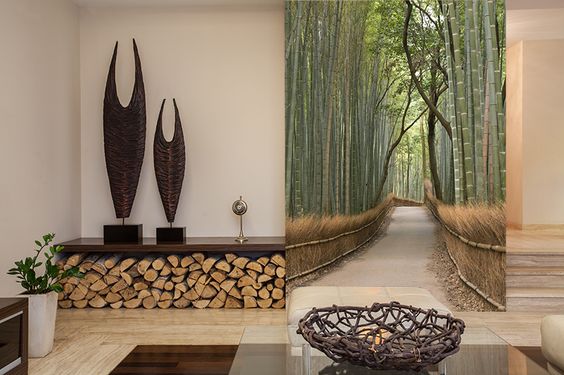 La peinture murale combine des caractéristiques décoratives et pratiques. Visuellement augmenter la hauteur des plafonds peut photowall-papier avec des motifs verticaux: tiges de bambou, pins, en hausse. Les paysages qui emportent les spectateurs (sentiers de course, vues sur la mer, champs infinis) agrandissent l’espace d’une petite pièce. En choisissant une image, vous devez faire attention à la taille des détails qui y sont représentés. Ils ne doivent pas contredire la taille des choses dans votre appartement.
