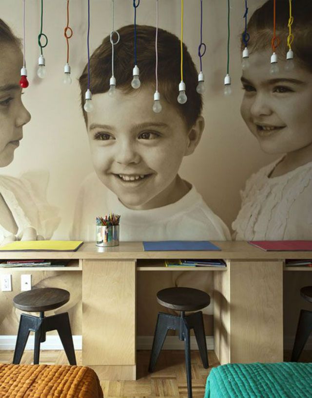La technologie des fonctionnalités vous permet de créer des options individuelles pour le papier peint photo. La chose principale est une image de haute qualité. Vous pouvez placer vos photos, portraits ou dessins d'enfants préférés dans la pièce.