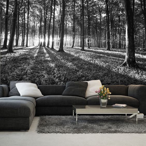 Ceux qui souhaitent acheter des dessins en noir et blanc doivent s’occuper de la présence d’éléments lumineux dans le salon. Sinon, la pièce peut devenir terne. Il est recommandé de placer le papier peint dans des tons clairs dans les salons sombres et peu éclairés. Dans les pièces baignées de lumière, les dessins aux couleurs sombres donneront une apparence élégante sans cacher l’éclairage de la salle. Après avoir choisi une parcelle de papier peint, veillez à ce que l’habitacle soit combiné avec style à votre salon.Par exemple, un dessin représentant une ville antique sablonneuse dans un salon bleu orange serait inapproprié.