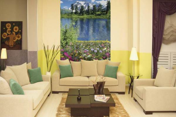 L'un des thèmes les plus universels lors du choix des fonds d'écran photo. La variété des paysages est si élevée qu'ils peuvent être utilisés dans n'importe quel salon. Les paysages peuvent être mer, montagne, prairie, forêt. La présence d’un espace naturel dans la pièce favorise la détente, surtout après une dure journée de travail.