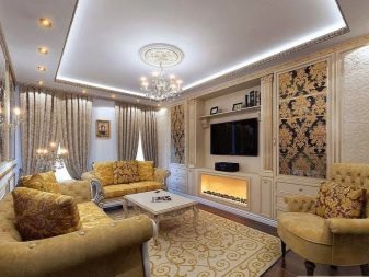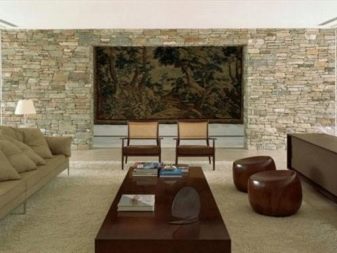 Une caractéristique importante est le choix d'un matériau de finition adapté aux salons modernes. La pierre naturelle est parfaite, ainsi que ses équivalents artificiels qui ressemblent à l'original. Ils ont une texture intéressante et inhabituelle et s'intègrent parfaitement dans les intérieurs modernes. Pour les petites pièces, il est préférable de choisir du gypse artificiel ou du plâtre.