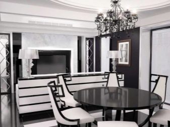 Ce style est caractérisé par une combinaison de différentes formes géométriques. Il peut s'agir de tables rondes et d'éléments rectangulaires sous la forme d'appuis de fenêtre, de peintures, de sièges de canapé. Pour la tapisserie d'ameublement de meubles choisissez la peau des animaux exotiques et d'autres matériaux peu communs.