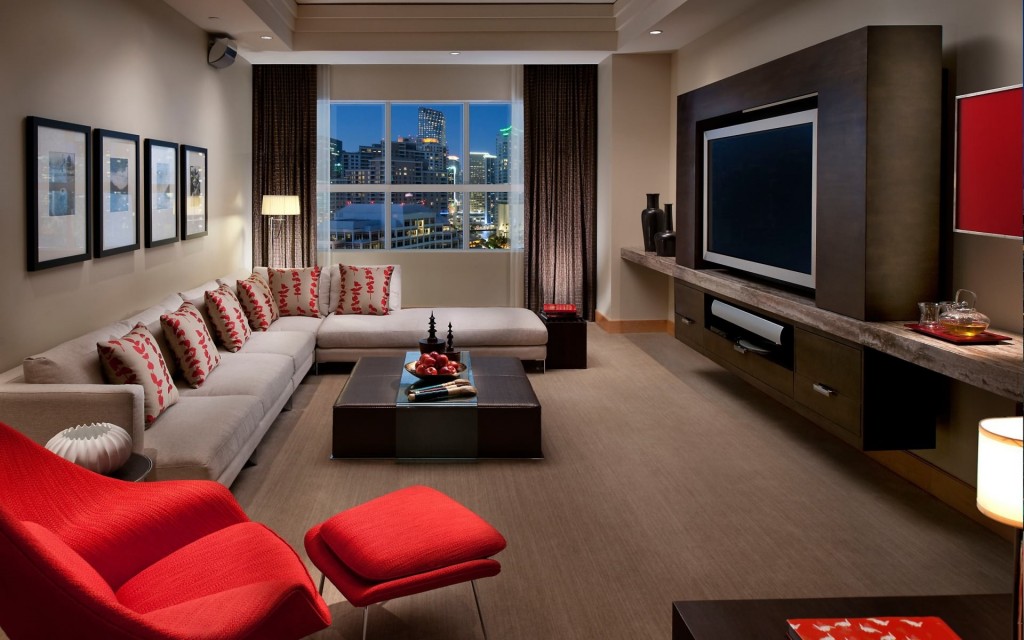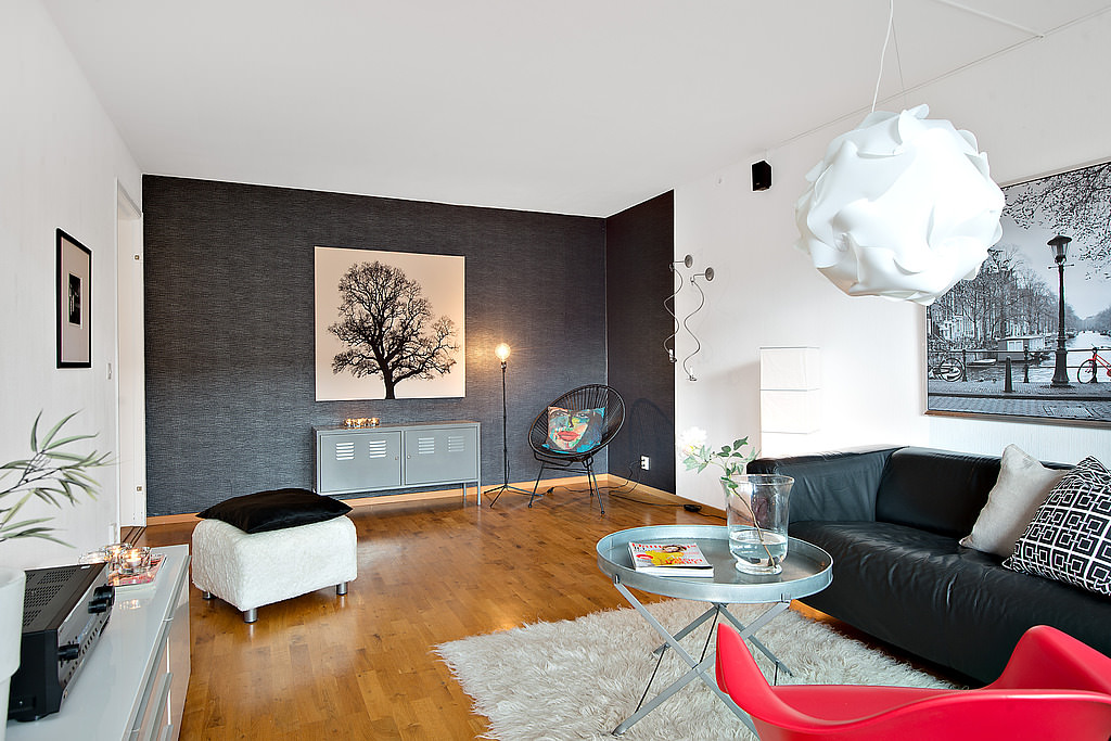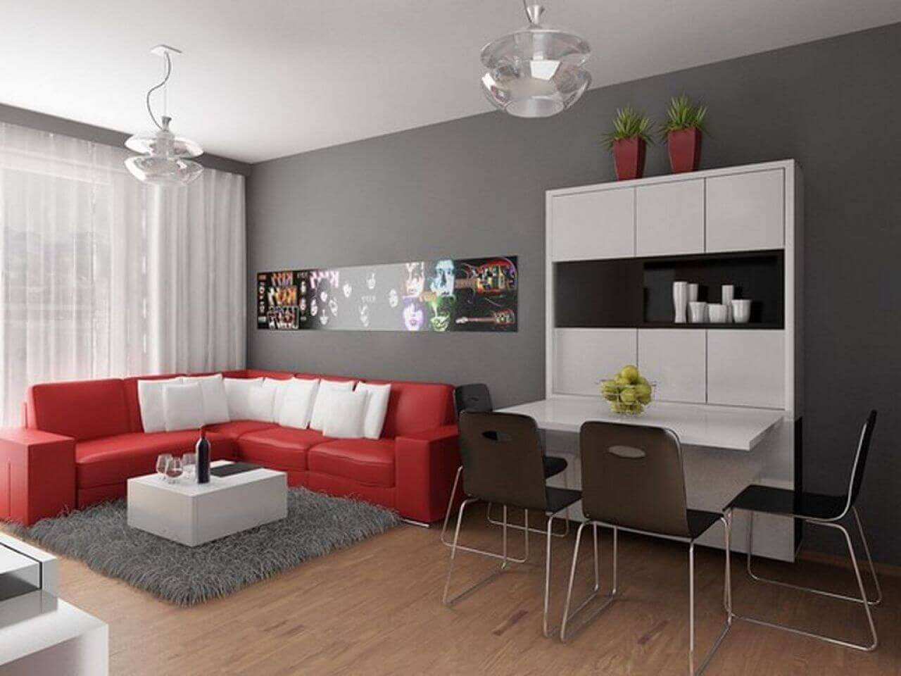 En même temps, dans un intérieur moderne, vous devez créer des accents lumineux, qu’il s’agisse de chaises rouges, de cadres rouges ou d’oreillers lumineux sur le canapé. En outre, vous pouvez utiliser à cet effet des couleurs inhabituelles, des tables basses originales ou des tapis.