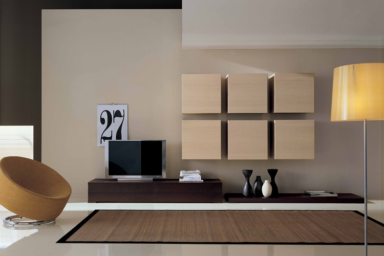 L'intérieur de la salle de séjour est toujours beau et pertinent regarde un design simple, alors vous devriez essayer de suivre le principe du minimalisme. Dans un tel salon aura fière allure meubles de taille moyenne. Les chaises préfèrent remplacer les bouffées et les chaises - tabourets. De plus, l’emplacement des meubles joue un rôle important à l’intérieur: vous ne devez pas le placer autour du périmètre. Les meubles peuvent être regroupés et disposés dans différentes parties d'une pièce spacieuse, en divisant la pièce en zones distinctes.