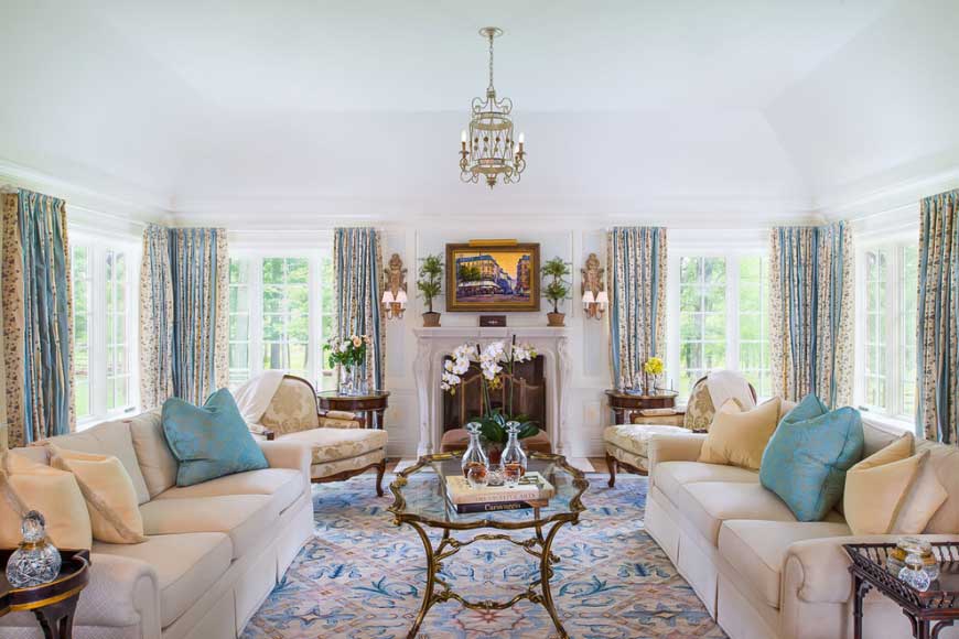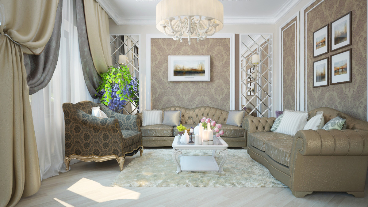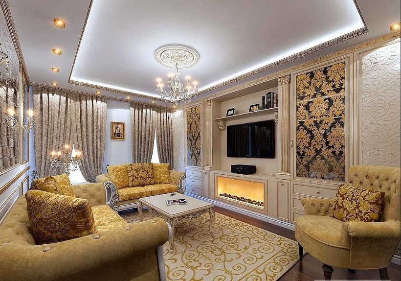 Les salons dotés de hauts plafonds complètent un grand lustre luxueux et des projecteurs supplémentaires, tandis que les plafonds peuvent être à plusieurs niveaux. Le salon de style classique peut être complété par des rideaux élégants. Il devrait y avoir beaucoup de fenêtres. Très bien s'ils sont gros.
