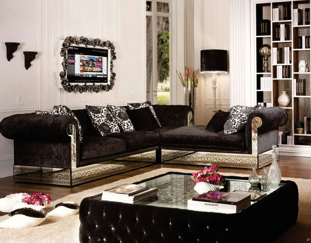 Pour le salon, il est important de choisir la bonne palette de couleurs afin que l’intérieur moderne ne se révèle pas ridicule. Pour la conception des murs, il est également permis d’utiliser la couleur noire classique. Il reste pertinent de saison en saison. En outre, les accents peuvent être arrangés en utilisant des couleurs vives intéressantes: émeraude, marsala, ambre, cerise, or, citron. Les couleurs plus chaudes permettent de rendre l’intérieur ensoleillé et lumineux, tandis que les nuances froides le remplissent de profondeur et de luxe.