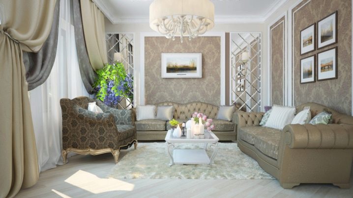 Dans un même salon, vous pouvez combiner différents styles et créer vos propres options. Ainsi, vous pouvez organiser le salon plus original et le rendre universel. Dans le même temps, vous pourrez faire preuve d'imagination et créer votre propre image unique de la pièce. Un tel intérieur pourra refléter l'humeur et le caractère du propriétaire.