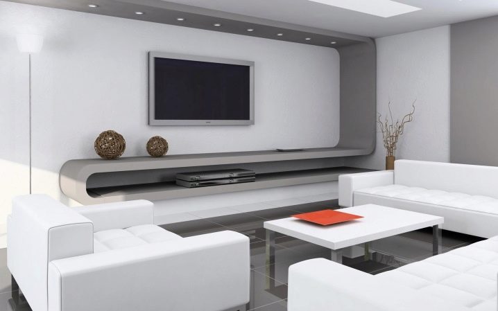 Un autre style populaire cette saison est la technologie de pointe. C'est une combinaison de commodité, de fonctionnalité et de fonctionnalité. Dans le cadre de ce style, vous pouvez associer le design minimaliste de la salle à un mobilier inhabituel, en complétant l'intérieur avec des technologies modernes (telles que les téléviseurs à plasma, les appareils audio, les ordinateurs). Vous pouvez jouer sur le contraste et utiliser différentes formes géométriques.