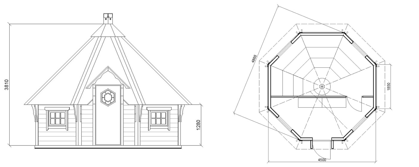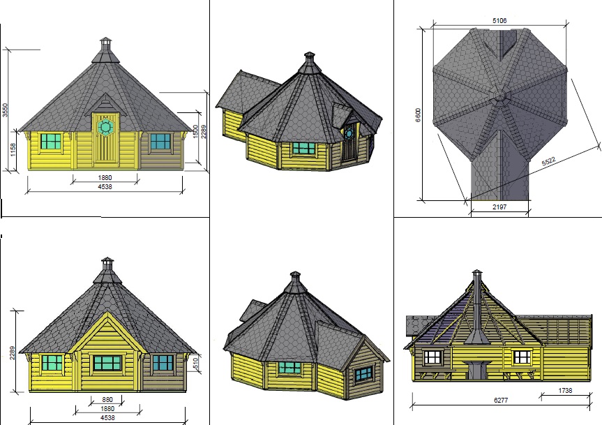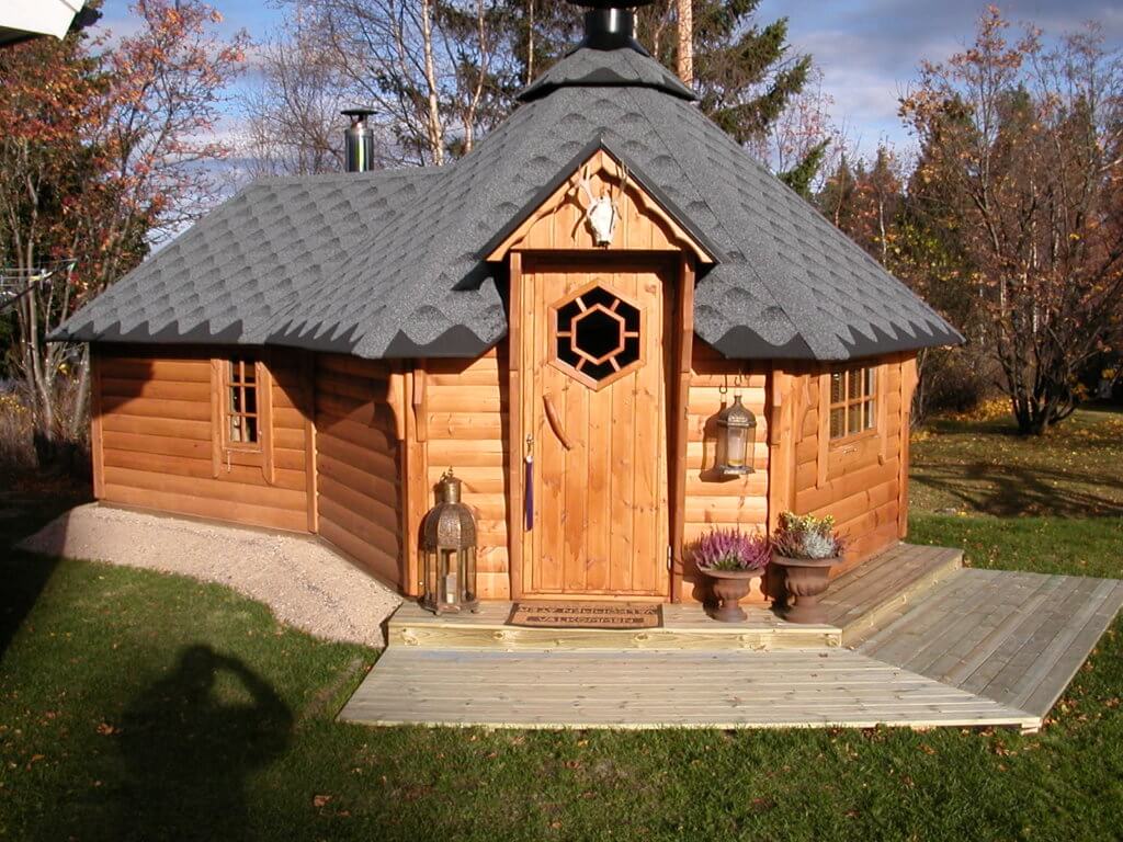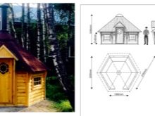 La maison hexagonale se caractérise par la présence d'asymétrie. Grâce à une forme intéressante et à un visage supplémentaire, elle peut être conçue à l'origine dans n'importe quel style. Quant à l’octogone, il est ensuite choisi pour les grands tonnelles finlandaises, conçu pour une famille de 6 personnes. Son installation est coûteuse et prend du temps, car la construction nécessite beaucoup de matériaux. Mais il est à noter que la tonnelle octogonale semble la plus attrayante et la plus luxueuse.