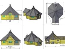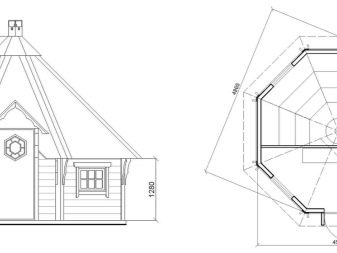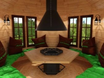 - Mise en page confortable. En dehors du bâtiment de chalet peut sembler petit, mais comme il a une forme six ou octaédrique, les pièces à l’intérieur sont spacieuses.