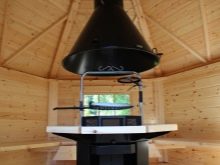 La construction de telles structures n'est pas particulièrement difficile. C’est assez réaliste de le faire soi-même puisque tout le travail est fait de la même manière que les axes habituels. Si vous effectuez correctement l’installation, le grill n’est pas seulement un excellent lieu de cuisson, il réchauffe également bien la pièce en hiver, créant ainsi toutes les conditions nécessaires au repos.