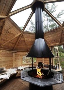 - Caractéristiques de l'arrangement. Selon que la pièce est équipée d'un brasier, d'un barbecue ou d'un foyer, la surface est calculée. Dans certains cas, ils mettent simplement un poêle au centre du bâtiment.