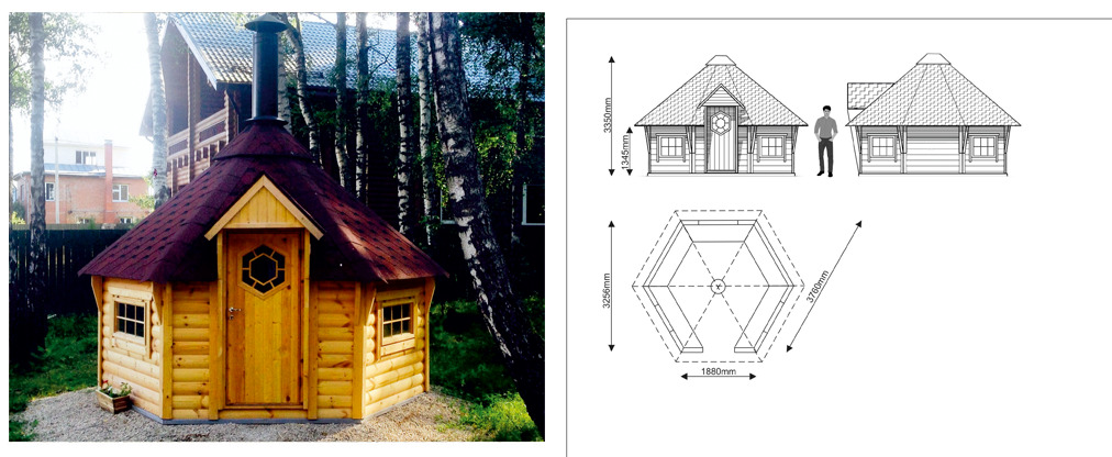 Pour dessiner correctement les dessins, vous devez également connaître la taille de la structure planifiée. Les maisons finlandaises ont généralement un diamètre de 3 à 5 mètres et une hauteur de 2,5 mètres. En choisissant la taille de la structure, vous devez considérer les nuances suivantes: