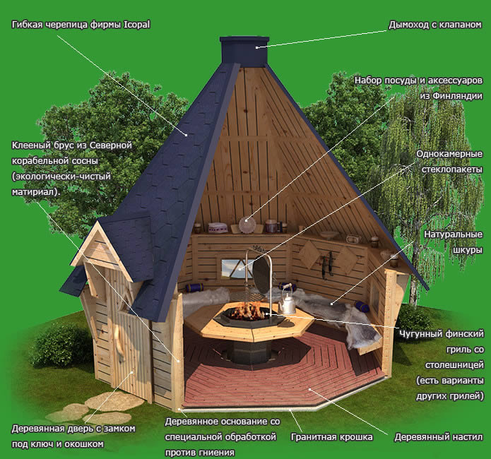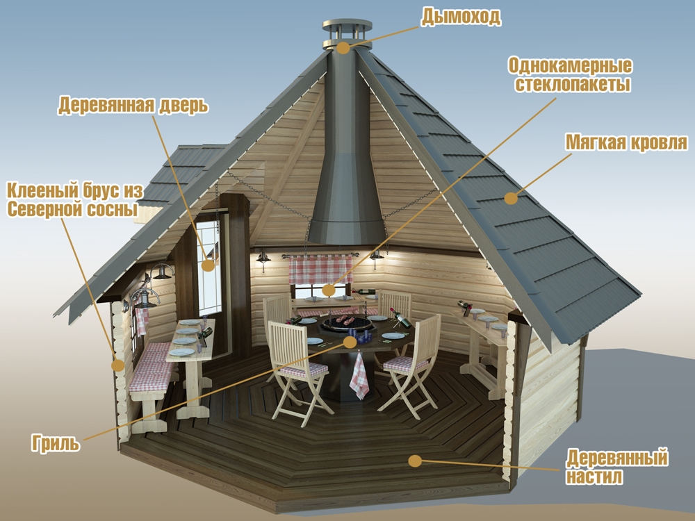 Homeland House Grill est la Finlande.Grâce à son design pratique et à son look élégant, il s’est recommandé avec succès partout dans le monde et la majorité des résidents estivaux rêvent d’une telle construction sur leur site. Avant de l'installer, vous devez examiner attentivement la disposition et la conception de la structure. Pour cela, un projet est tout d'abord élaboré et le type de future tonnelle sélectionné. La structure est le plus souvent réalisée sous la forme d'un six, sept ou octogone. La forme hexagonale est considérée comme la plus populaire dans les projets.car sa construction est rapide et peu coûteuse.